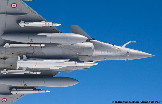 資料圖:陣風(fēng)在機(jī)身中線掛點(diǎn)攜帶了一枚ASMP-A巡航導(dǎo)彈