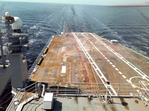 在這艘排水量達(dá)4.54萬噸的前蘇聯(lián)航母上,除了俄羅斯北方造船廠(該廠對這艘航母進(jìn)行了改裝)的代表之外,還有印度海軍軍官。