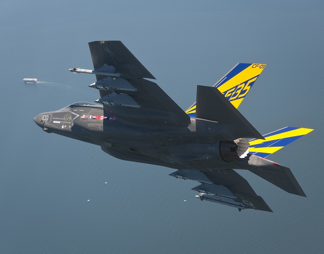 據(jù)美國海軍航空系統(tǒng)司令部2012年7月3日報道 艦載型F-35戰(zhàn)機(jī)于6月27日完成了首次掛載外部武器的飛行。海軍試飛員駕駛編號CF-1的飛機(jī),掛載AIM-9X“響尾蛇”導(dǎo)彈以測試飛行參數(shù)和飛機(jī)共振情況。