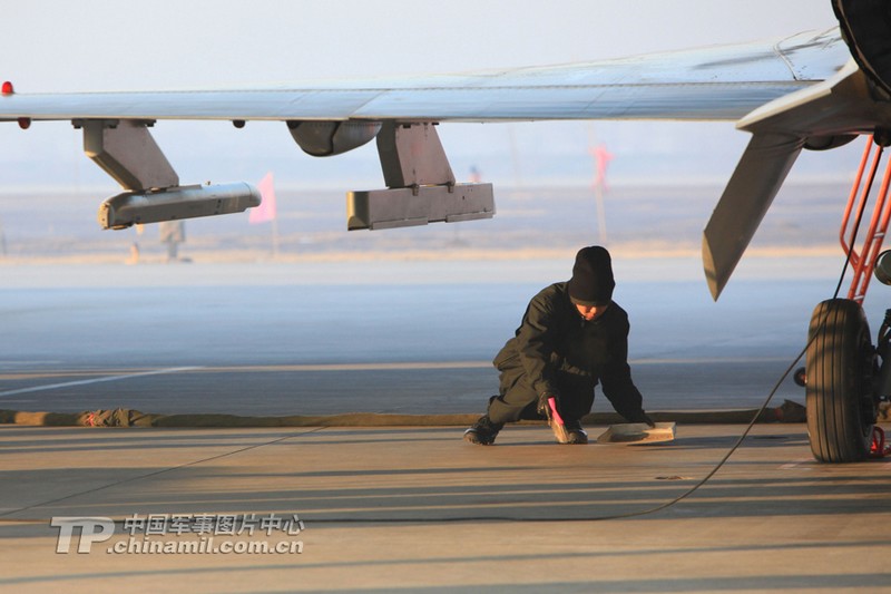 2013年1月6日,空軍華北機場某航空兵師在這一天新年首飛。在進行了兩天的充分準(zhǔn)備之后,機務(wù)人員在早晨6點30分就準(zhǔn)時來到外場。上午9點整,數(shù)架殲十戰(zhàn)機準(zhǔn)時升空,開始了一天的訓(xùn)練。記者在外場有幸記錄下這冬日陽光里精彩的飛行場景。(來源:中國軍網(wǎng) 苑小偉攝影報道)