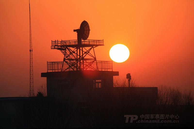 朝陽劃過氣象雷達的一角,寧靜的外場變的越來越喧囂。苑小偉 攝