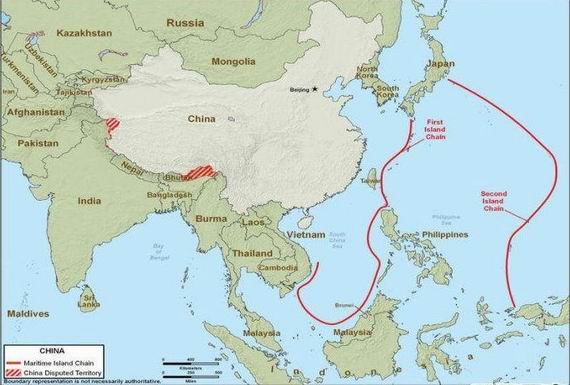 外媒制作的第一島鏈與第二島鏈?zhǔn)疽鈭D,不代表本網(wǎng)觀點(diǎn)。