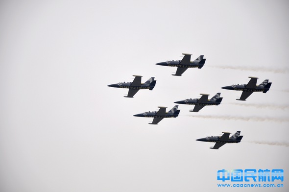 歐洲“百年靈”噴氣機(jī)特技飛行表演隊(duì)是全球唯一的私家特技飛行表演隊(duì),隊(duì)員由清一色的法國(guó)空軍和“法蘭西巡邏兵”特技飛行表演隊(duì)的退役飛行員組成,平均每年都會(huì)在歐洲各大航展、F1賽事和其他體育賽事上進(jìn)行50多場(chǎng)的表演,獲得過(guò)國(guó)際航聯(lián)飛行大賽民機(jī)編隊(duì)表演組冠軍。該表演隊(duì)曾在去年舉辦的第九屆中國(guó)航展上進(jìn)行了精彩的中國(guó)首秀,驚險(xiǎn)刺激的表演讓中外觀眾嘆為觀止。