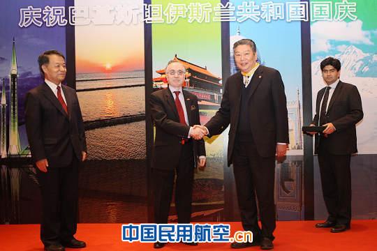 3月21日,在巴基斯坦國慶日來臨之際,巴基斯坦駐中國大使館在北京舉辦巴基斯坦國慶日招待會。巴基斯坦駐華大使馬蘇德哈立德代表巴基斯坦總統(tǒng)向7位為增進巴中關系而做出重要貢獻的中國公民授予獎章。其中,中航工業(yè)董事長林左鳴被授予巴基斯坦“卓越之星”國家榮譽獎章,以表彰林左鳴董事長為推動中巴兩 國航空合作、推進巴基斯坦航空事業(yè)做出的貢獻。