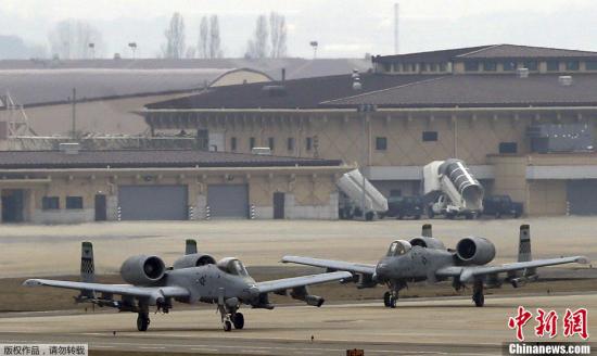 當(dāng)?shù)貢r間4月2日,位于韓國首爾以南的烏山空軍基地內(nèi),駐韓美軍戰(zhàn)機頻繁進行起降訓(xùn)練。圖為停放在機場上的美軍A-10攻擊機。