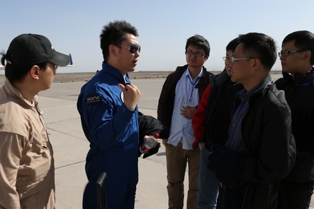 試驗(yàn)隊負(fù)責(zé)人與局方試飛員溝通交流。