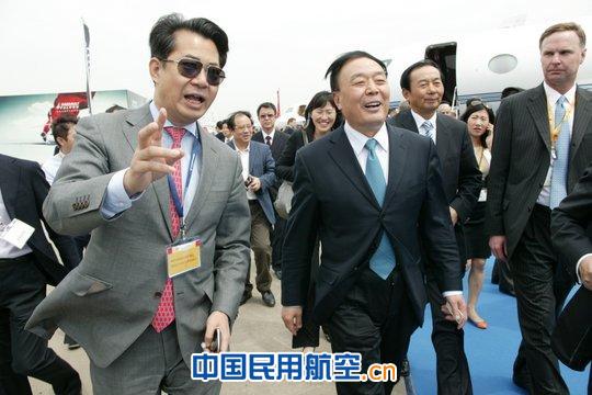 民航局局長李家祥、副局長夏興華等一行在巴西航空工業(yè)公司大中華區(qū)總裁關(guān)東元的陪同下參觀巴航工業(yè)公務(wù)機 攝影:安利國