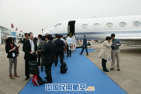 盡管昨天展會剛剛開幕,但已經(jīng)有了意向訂單。 巴西航空工業(yè)公司就宣布,與一位中國客戶簽訂了世襲1000超大型噴氣公務機的銷售協(xié)議。而灣流公司則現(xiàn)場向四川一家通用航空公司交付了一架G450和一架G550,該通航公司人員透露,這兩架飛機將用于像客戶提供租賃和包機服務。