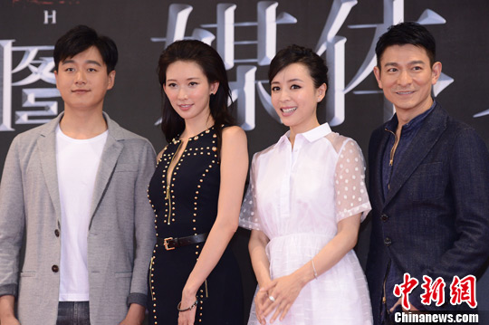6月2日,超感官迷情特工大片《天機(jī)·富春山居圖》在北京舉行了電影全球首映禮。圖為四大主演。中新社發(fā) 李學(xué)仕 攝