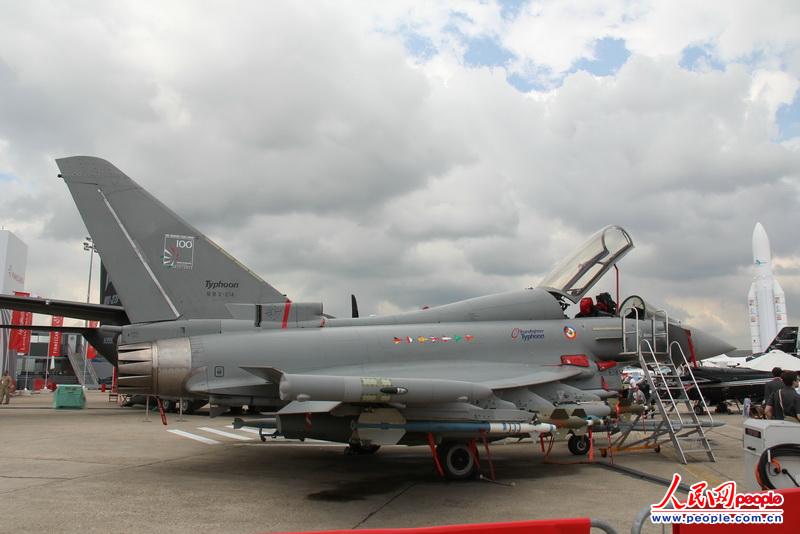 第50屆法國巴黎航展17日-23日在巴黎郊區(qū)的布爾歇機場開幕,眾多國際知名的新型軍民用飛機匯聚巴黎。圖為歐洲“臺風(fēng)”戰(zhàn)斗機靜態(tài)展示。(李志偉 攝影)