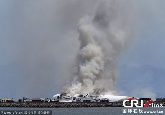 當?shù)貢r間2013年7月6日,韓亞OZ214航班在美國舊金山機場降落時墜毀。圖片來源:CFP/John Green