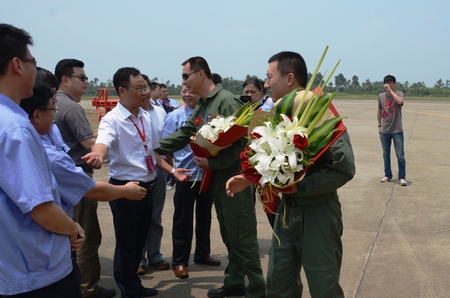 本次高溫高濕試飛工作得到了中航工業(yè)長飛公司的大力協(xié)助,長飛公司董事長王文飛等親自前往機場接機。