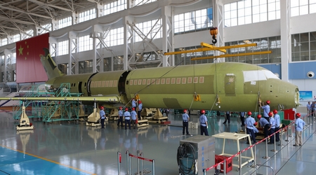 2013年7月25日至29日,ARJ21-700飛機107架機先后完成了中機身、機翼對接任務,中后機、垂尾對接任務,以及前機身、機頭對接任務,正式進入全機對接階段。接下來,107架機將進行測量定位、預裝配、全機氣密和淋雨等相關試驗。