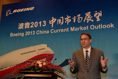 波音民用飛機(jī)集團(tuán)市場營銷副總裁蘭迪?廷塞斯波發(fā)布2013年中國市場展望。波音供圖