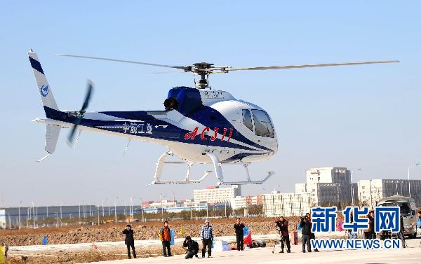 由中國(guó)航空工業(yè)集團(tuán)公司自主研制的國(guó)產(chǎn)輕型多用途直升機(jī)AC311在中航直升機(jī)天津分公司完成總裝下線,于11月8日在天津成功首飛。AC311直升機(jī)的首飛成功、由天津總裝的首架AC301直升機(jī)實(shí)現(xiàn)客戶接機(jī),標(biāo)志著中國(guó)AC系列民用直升機(jī)產(chǎn)品開發(fā)邁上新臺(tái)階。據(jù)介紹,AC311直升機(jī)是性能優(yōu)越的2噸級(jí)輕型多用途直升機(jī),可廣泛應(yīng)用于飛行訓(xùn)練、人員運(yùn)輸、公安執(zhí)法、通信指揮、航拍攝影、醫(yī)療救護(hù)、電力巡線、護(hù)林防火、飛播滅蟲等任務(wù)。與AC311一同飛行的直升機(jī)是同一系列的輕型直升機(jī)AC301。AC301是天津基地完成總裝的首架直升機(jī),將由中國(guó)飛龍通用航空公司接收并投入運(yùn)營(yíng)。新華社記者劉海峰攝