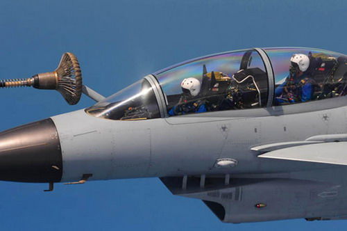 南海上空進(jìn)行空中加油訓(xùn)練的雙座型殲-10戰(zhàn)機(jī)