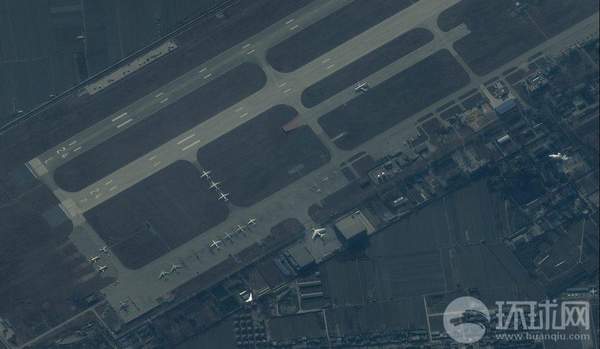 資料圖:美國衛(wèi)星拍攝到的中國中部閻良某機(jī)場的照片,圖中間靠下位置的即為運(yùn)-20運(yùn)輸機(jī)。