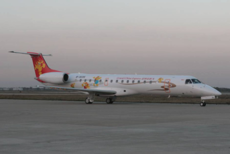 身著卡通“貔貅”的ERJ145噴氣式客機