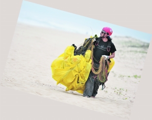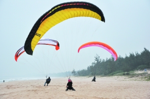 這是一群“斗傘”的人,從他們的如小麥般的膚色不難看出他們對于陽光和沙灘的熱愛,他們手中的滑翔傘在海風(fēng)中像撐滿了的帆,似乎稍一放松,它就會(huì)帶著操縱者乘著風(fēng)向天邊飛去,地上的操縱者則像在與大自然較量,他們把身體重心放到最低,幾乎都要坐在甚至躺在沙灘上。