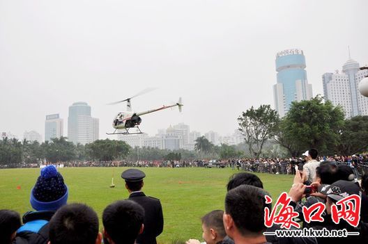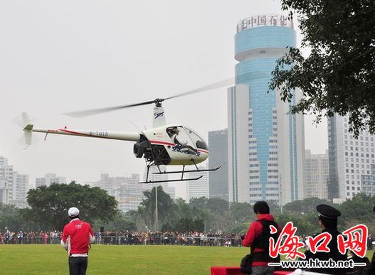 12月17日,2011中國(guó)首屆環(huán)海南島飛行拉力賽在海口舉行;顒(dòng)現(xiàn)場(chǎng)規(guī)?涨埃廴诵南,精彩紛呈。據(jù)悉,本次飛行拉力賽至本月30日止。圖為直升機(jī)定位“投籃”賽現(xiàn)場(chǎng)。