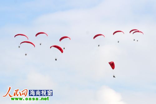 21日上午8點左右,經(jīng)過一天的休整,2011環(huán)海南島飛行拉力賽東方段在東方市邊貿(mào)城正式開幕。比起前幾日的大風天氣,今天的風速明顯減弱,在?谖茨芘c廣大市民和游客見面的熱氣球、動力傘、動力三角翼今天也終于如愿升空,在東方的碧海藍天間盡情的翱翔。大批東方市民趕到現(xiàn)場,一幕幕精彩的飛行表演引得現(xiàn)場尖叫連連、掌聲不斷。
