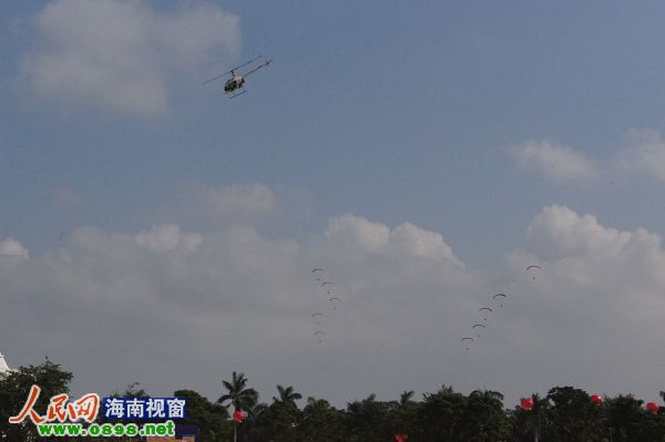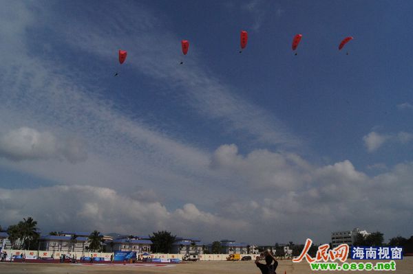 2011環(huán)海南島飛行拉力賽將于12月30日在興隆舉行,為使比賽圓滿(mǎn)結(jié)束,12月29日,組委會(huì)舉行了閉幕式表演合練,精彩的表演引來(lái)周?chē)罕婈囮嚉g呼。