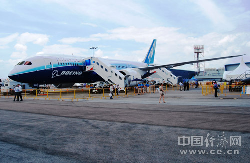 “夢幻客機(jī)”波音787在航展中亮相。中國經(jīng)濟(jì)網(wǎng)陶杰/攝影