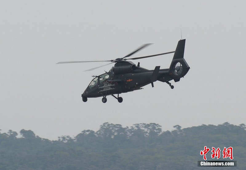中新網(wǎng)珠海11月11日電(陳海峰) 中國(guó)陸航直19武裝直升機(jī)11日在珠海航展上空進(jìn)行了精彩的飛行表演。