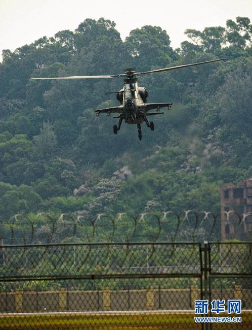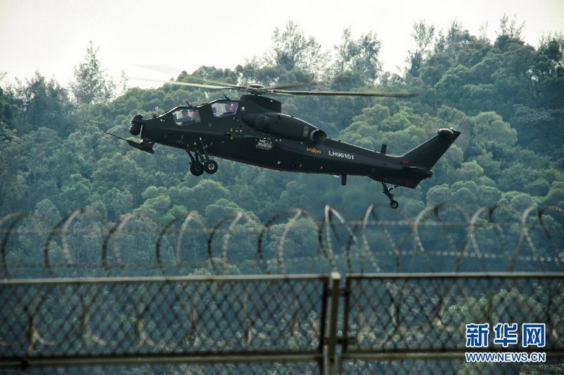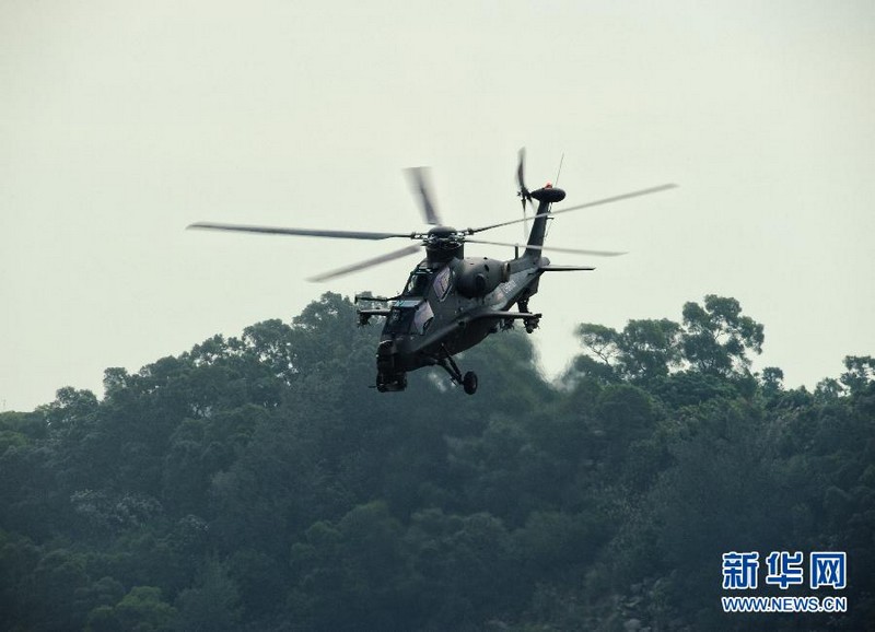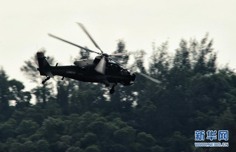 2012年11月11日,國產(chǎn)武直10武裝直升機(jī)在珠海三灶機(jī)場(chǎng)進(jìn)行飛行訓(xùn)練。當(dāng)日,我國自主研制生產(chǎn)的武直10武裝直升機(jī)在珠海三灶機(jī)場(chǎng)進(jìn)行了約20分鐘的適應(yīng)性飛行訓(xùn)練,做出倒飛、萊維斯曼機(jī)動(dòng)、高速大角度俯沖、低空小半徑盤旋等動(dòng)作,展現(xiàn)出其優(yōu)異性能,引來航展現(xiàn)場(chǎng)觀眾頻頻喝彩。楊光 攝 圖片來源:新華網(wǎng)