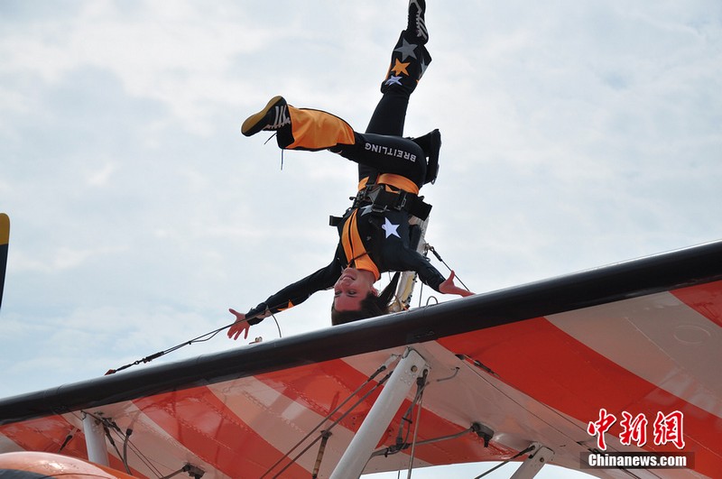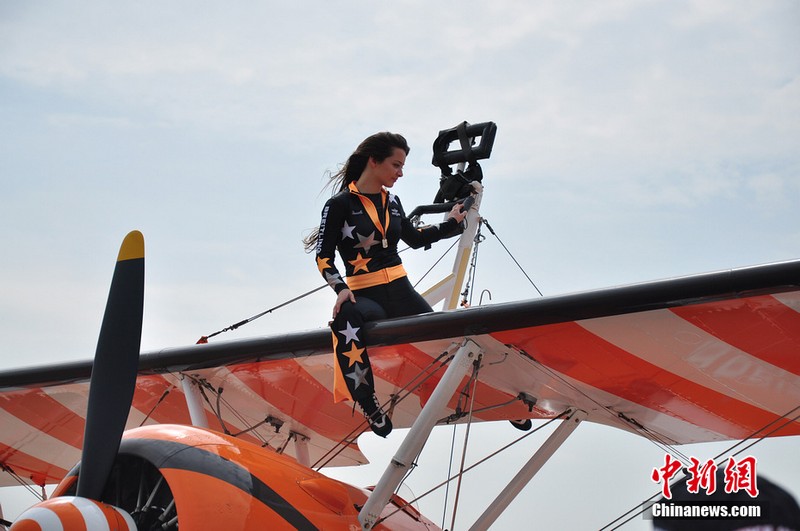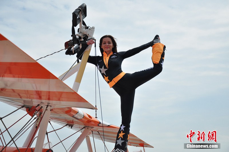 機(jī)翼上的芭蕾:美女特技演員機(jī)翼上跳舞