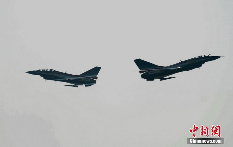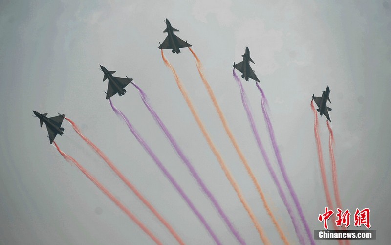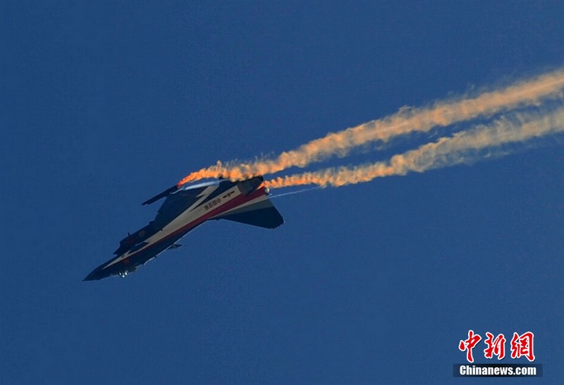 中國空軍八一飛行表演隊上演了“向上開花”、“雙機(jī)對沖”、“小半徑轉(zhuǎn)圈”等精彩動作。記者曾多次觀看過八一飛行表演隊的表演,而這次是最精彩的一次。