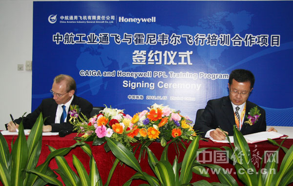 中國經(jīng)濟(jì)網(wǎng)珠海航展特派記者團(tuán) 記者王飛11月16日報(bào)道 15日,中航通用飛機(jī)有限責(zé)任公司(以下簡稱“中航工業(yè)通飛”)副總經(jīng)理、珠海中航飛行學(xué)校有限公司董事長沙長安與霍尼韋爾航空航天(簡稱“霍尼韋爾公司”)亞太區(qū)總裁Briand Greer簽署了“飛機(jī)5用駕駛員駕照(PPL)項(xiàng)目合作備忘錄”。這標(biāo)志著中航工業(yè)通飛下屬的珠海中航飛行學(xué)校向霍尼韋爾公司的工程技術(shù)人員和管理人員提供飛行培訓(xùn)服務(wù)的工作進(jìn)入實(shí)施階段。
