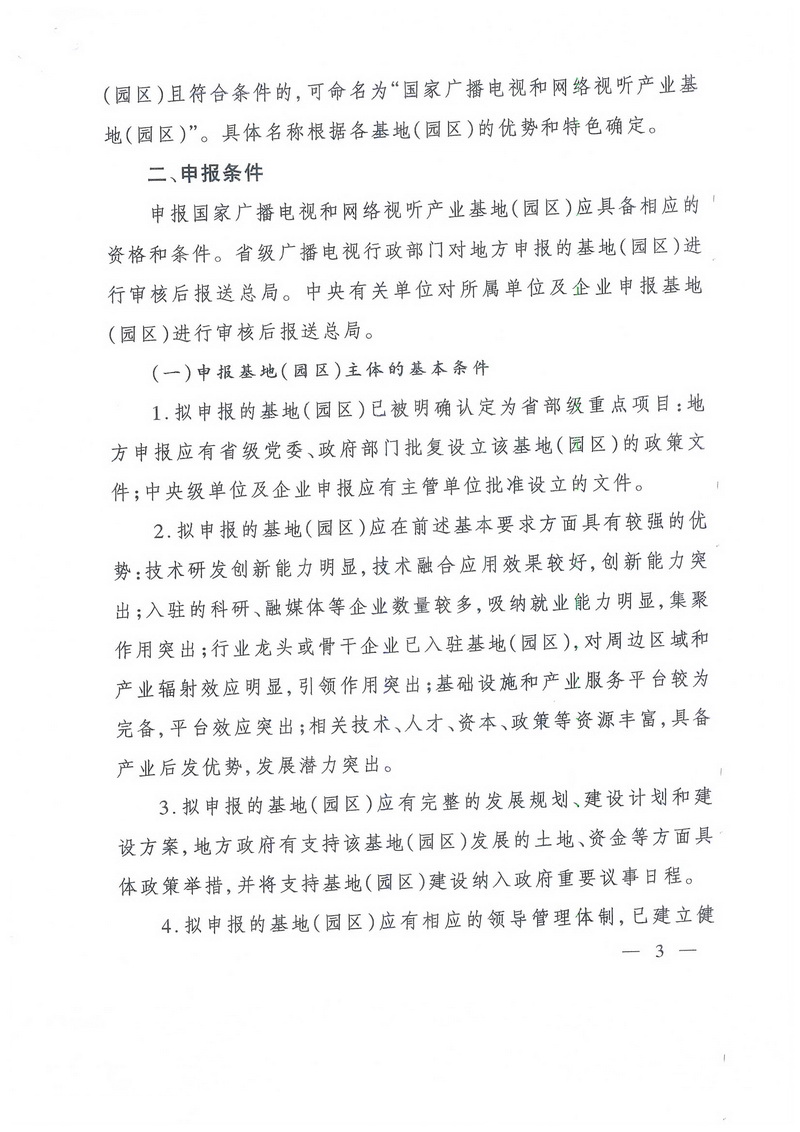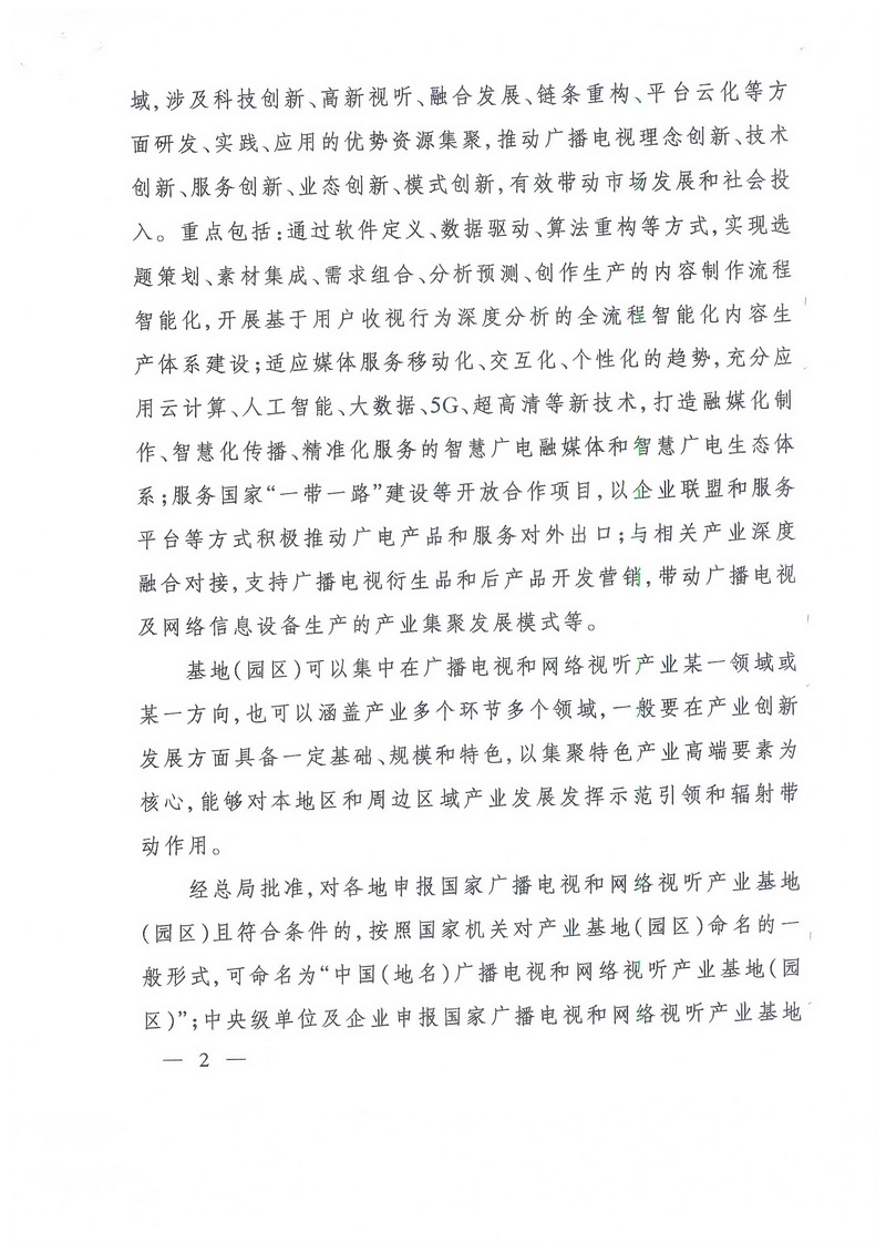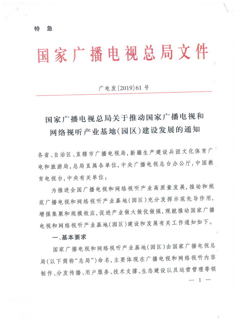 國家廣播電視總局關于推動國家廣播電視和網(wǎng)絡視聽產(chǎn)業(yè)基地(園區(qū))建設發(fā)展的通知
