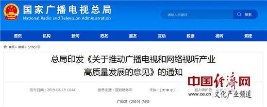 關(guān)于推動廣播電視和網(wǎng)絡(luò)視聽產(chǎn)業(yè) 高質(zhì)量發(fā)展的意見