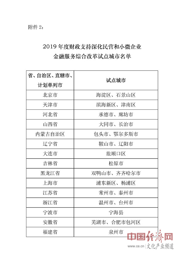 經(jīng)濟(jì)日報(bào)-中國經(jīng)濟(jì)網(wǎng)北京11月26日訊 日前,財(cái)政部公布2019年度財(cái)政支持深化民營和小微企業(yè)金融服務(wù)綜合改革試點(diǎn)城市名單,確定全國59個(gè)市(州、區(qū))入選首批試點(diǎn)城市。