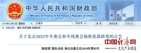 關(guān)于北京2022年冬奧會和冬殘奧會稅收優(yōu)惠政策的公告