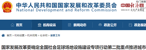 據(jù)了解,2019年7月,國家發(fā)展改革委會同有關(guān)部門啟動實施專項行動,旨在通過“中央出資金、地方出政策、企業(yè)出服務(wù)”的方式,推動破解“用地難、籌資難、運營難”等瓶頸問題,努力緩解人民群眾“望球興嘆、一場難求”的矛盾,確保《全國足球場地設(shè)施建設(shè)規(guī)劃(2016—2020年)》目標(biāo)如期完成。截至目前,專項行動已確定兩批共41個重點推進(jìn)城市。
