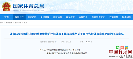 經(jīng)濟(jì)日報-中國經(jīng)濟(jì)網(wǎng)北京6月3日訊 近日,國家體育總局發(fā)布了《體育總局統(tǒng)籌推進(jìn)新冠肺炎疫情防控與體育工作領(lǐng)導(dǎo)小組關(guān)于有序恢復(fù)體育賽事活動的指導(dǎo)意見》(以下簡稱“意見”),意見指出,采取預(yù)約、限流等方式,有序開放各類運(yùn)動場所。 >>>更多政策可查看中國經(jīng)濟(jì)網(wǎng)“中國文化產(chǎn)業(yè)政策庫”