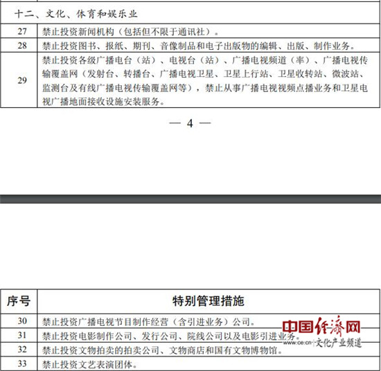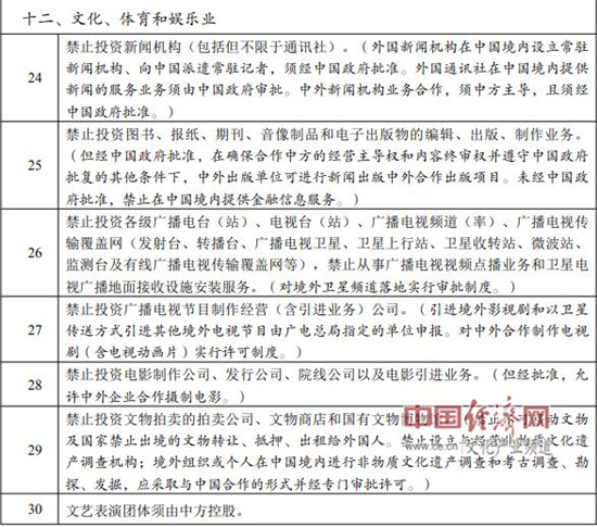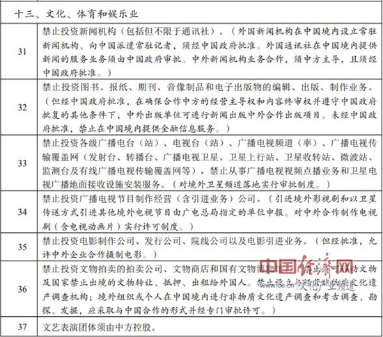 2019年版外商投資準入負面清單文體娛相關內(nèi)容