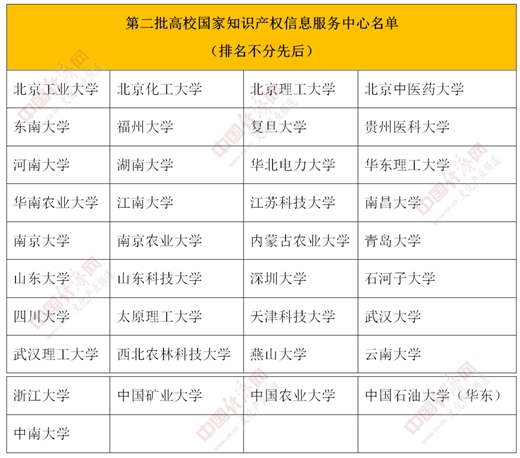 據(jù)中國(guó)經(jīng)濟(jì)網(wǎng)文化產(chǎn)業(yè)頻道記者了解,2019年3月7日,經(jīng)國(guó)家知識(shí)產(chǎn)權(quán)局辦公室聯(lián)合國(guó)家教育部辦公廳公布,北京大學(xué)等23家高校已入選“首批高校國(guó)家知識(shí)產(chǎn)權(quán)信息服務(wù)中心”名單。隨著第二批37家高校的入選,“高校國(guó)家知識(shí)產(chǎn)權(quán)信息服務(wù)中心”總體數(shù)量增至60家。