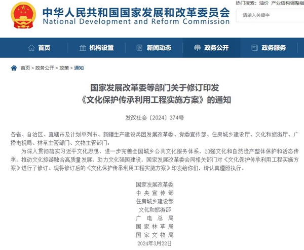 中國經(jīng)濟網(wǎng)北京4月8日訊(記者 成琪)據(jù)國家發(fā)改委網(wǎng)站4月7日消息,為進一步完善全國城鄉(xiāng)公共文化服務體系,加強文化和自然遺產(chǎn)整體保護和活態(tài)傳承,推動文化旅游融合高質(zhì)量發(fā)展,助力文化強國建設,國家發(fā)展改革委會同相關部門對《文化保護傳承利用工程實施方案》(以下簡稱“《方案》”)進行了修訂?!斗桨浮访鞔_,要依托國家級資源新建或改擴建一批重大文化設施,提升公共文化服務水平,促進優(yōu)秀傳統(tǒng)文化和寶貴自然遺產(chǎn)整體保護和活態(tài)傳承,推動高質(zhì)量發(fā)展和創(chuàng)造高品質(zhì)生活相得益彰。