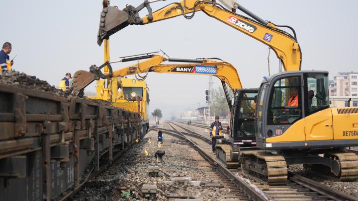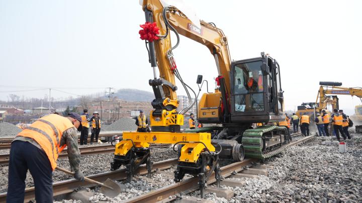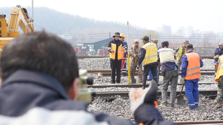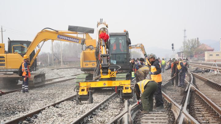 4月14日11時(shí)10分,在沈丹上行線石橋子站內(nèi)22號(hào)道岔旁人頭攢動(dòng),機(jī)械轟鳴,循聲望去,一臺(tái)道岔清篩鉤機(jī)、一臺(tái)搗固鉤機(jī)以及三臺(tái)配備精細(xì)篩網(wǎng)的鉤機(jī)已按預(yù)定方案就位,與此同時(shí),來(lái)自丹東工務(wù)段石橋子線路車間70余名干部職工身著黃色工作服,手拿撬棍、鐵鍬,在線路兩旁排隊(duì)等候施工命令的下達(dá),一場(chǎng)以機(jī)械為主力、人工作業(yè)精準(zhǔn)配合的道岔機(jī)械清篩施工即將有序展開(kāi)。