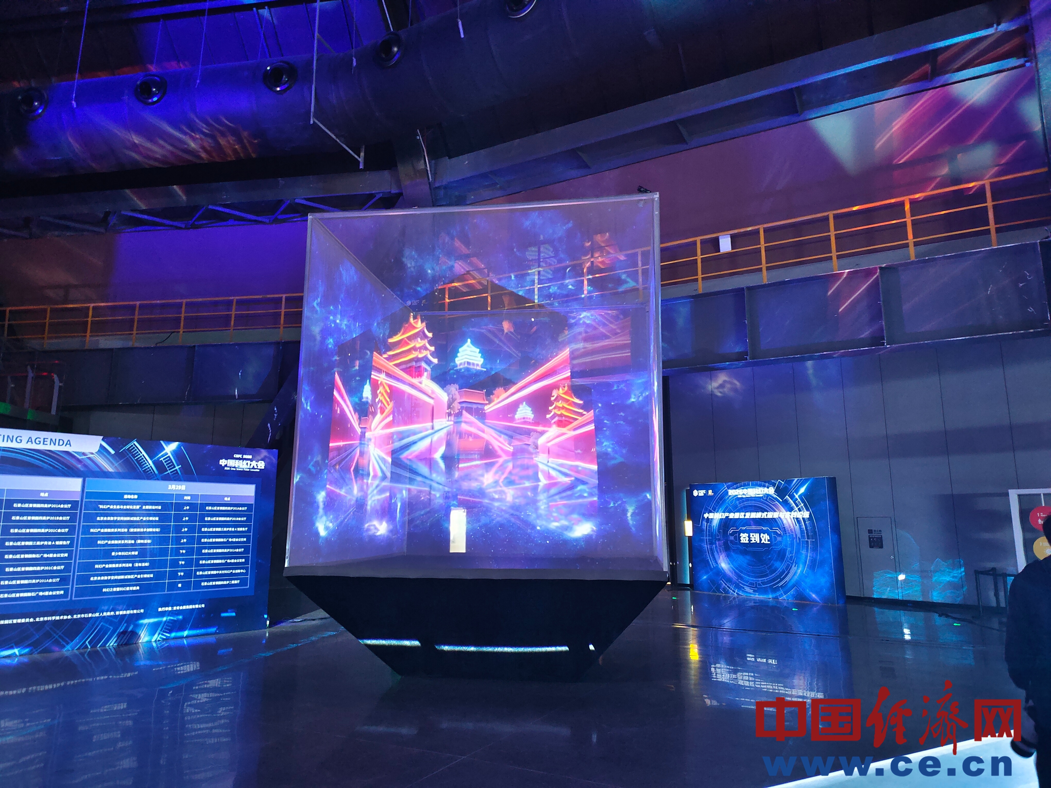 位于四高爐二樓大廳核心區(qū)域的“幻立方”,是一座通體發(fā)光的幕布立方體。中國經(jīng)濟(jì)網(wǎng)記者 朱曉倩/攝