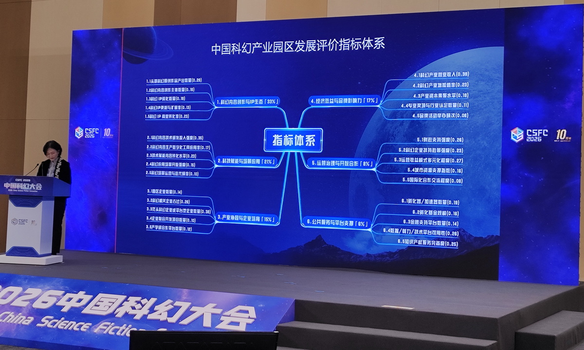 現(xiàn)場發(fā)布《中國科幻產(chǎn)業(yè)園區(qū)發(fā)展評價指標(biāo)體系》。中國經(jīng)濟網(wǎng)記者李冬陽/攝