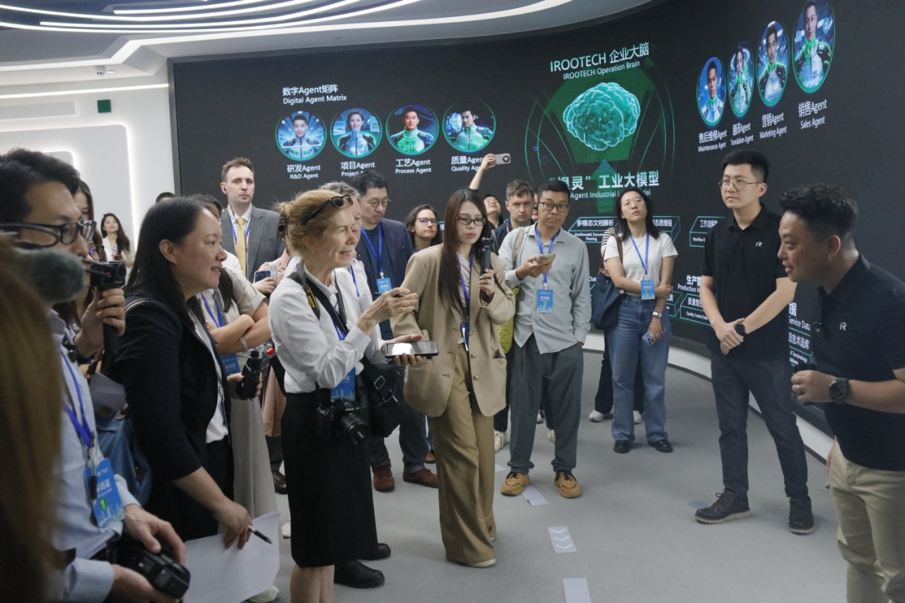 “外媒看中國”采訪團(tuán)到訪民營高科技企業(yè)樹根科技。(資料圖片)