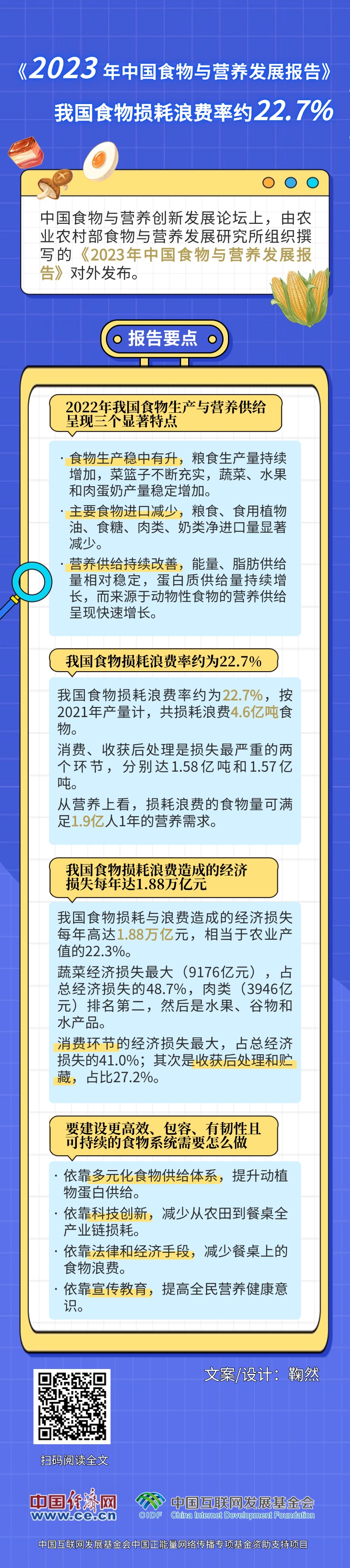 【圖解】《2023年中國食物與營養(yǎng)發(fā)展報告》發(fā)布 我國食物損耗浪費率約22.7%