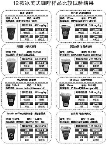 記者從深圳市消委會了解到,2023年11月至今年2月,深圳市消委會對市面上銷售的24款現(xiàn)制咖啡飲品開展比較試驗,測評參照GB 7101—2022《食品安全國家標準 飲料》、GB/T 30767—2014《咖啡類飲料》、GB 2760—2014《食品安全國家標準食品添加劑使用標準》等國家標準,對樣品的理化指標(咖啡因含量)、營養(yǎng)指標(能量、脂肪、總糖)、甜味劑(糖精鈉、阿斯巴甜、安賽蜜、甜蜜素)等項目進行檢測。