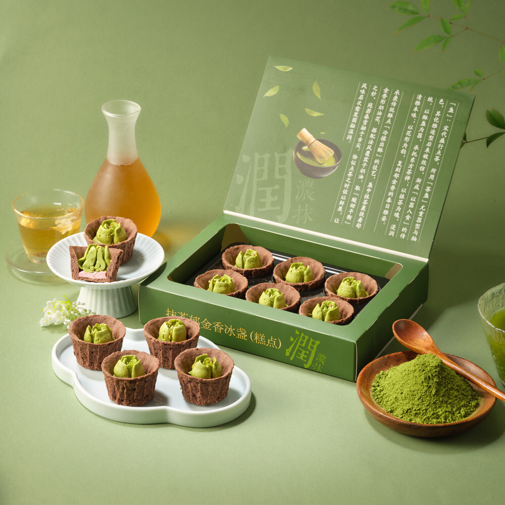 值得一提的,這批抹茶烘焙首次系統(tǒng)性強(qiáng)化“貴州抹茶”的產(chǎn)地標(biāo)識(shí),致敬宋代美食文化,其中不乏“冰盞”、“酥山”等復(fù)原宋代點(diǎn)茶器具與傳統(tǒng)點(diǎn)心的系列?!俺绷鞯娘L(fēng)終于吹向了國產(chǎn)抹茶,這次是以唐宋點(diǎn)心的形式?!焙旭R烘焙采購朱力群表示,這波貴茶烘焙的爆火,始于顏值與風(fēng)味,但也借了年輕人相信本土原料、鐘愛國潮審美的風(fēng)。