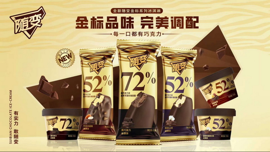 蒙牛冰淇淋順應(yīng)消費(fèi)者對(duì)新鮮美味的更高要求,在產(chǎn)品創(chuàng)新上大放異彩,各子品牌產(chǎn)品不斷升級(jí)、加速品類(lèi)完善。“隨變·金標(biāo)”系列精選進(jìn)口巧克力與生牛乳,以高可可含量72%、52%作為核心差異點(diǎn),完善巧克力冰淇淋賽道布局。蒙牛優(yōu)牧推出了生牛乳含量50%以上的牛奶棒冰淇淋,口感更香濃。冰+推出霜脆冰莓,突破品類(lèi)壁壘,創(chuàng)新三層水冰結(jié)構(gòu),內(nèi)置酥脆冰殼,加入真實(shí)丹東草莓果肉,三重口感,層層酷爽。茉香桃桃融合茉莉花茶的淡雅香氣與真實(shí)白桃果肉的甜美,沁甜冰爽,低脂輕負(fù)擔(dān),暢享酷爽美味。