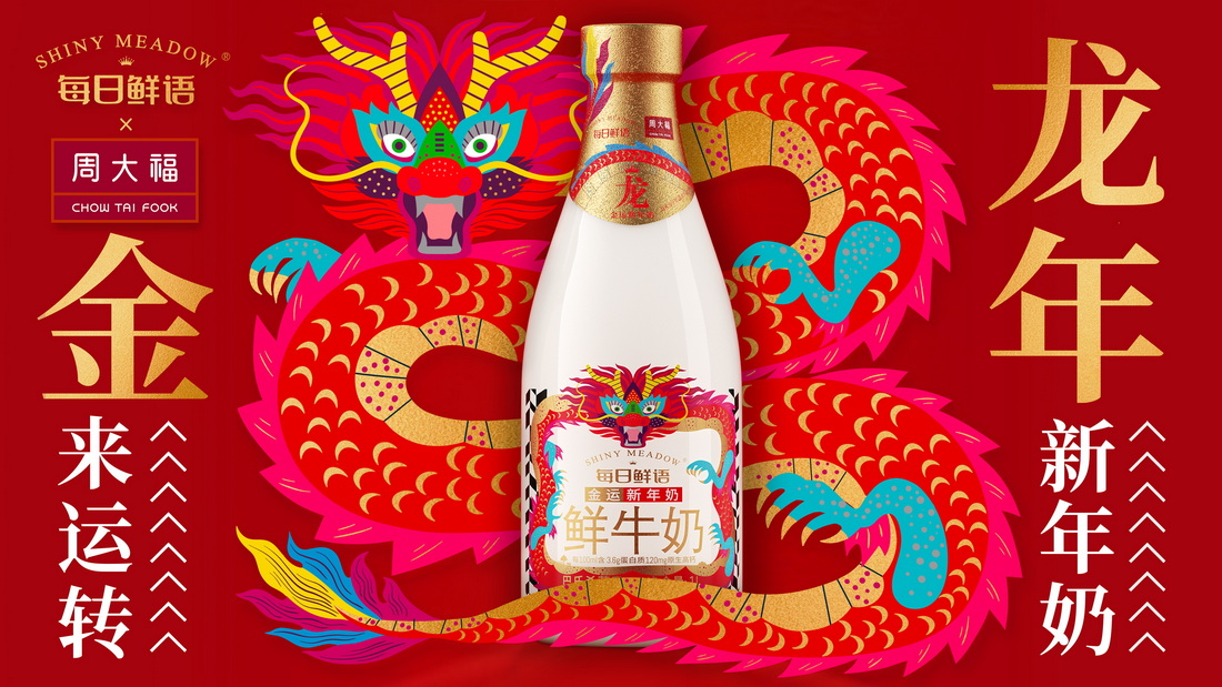 品牌跨界聯(lián)名,不斷活化品牌,帶來(lái)增益轉(zhuǎn)化。春節(jié)期間,每日鮮語(yǔ)攜手周大福,推出“金運(yùn)新年奶”,開(kāi)啟“龍來(lái)運(yùn)轉(zhuǎn)”新一年,為消費(fèi)者帶來(lái)“黃金”營(yíng)養(yǎng)。